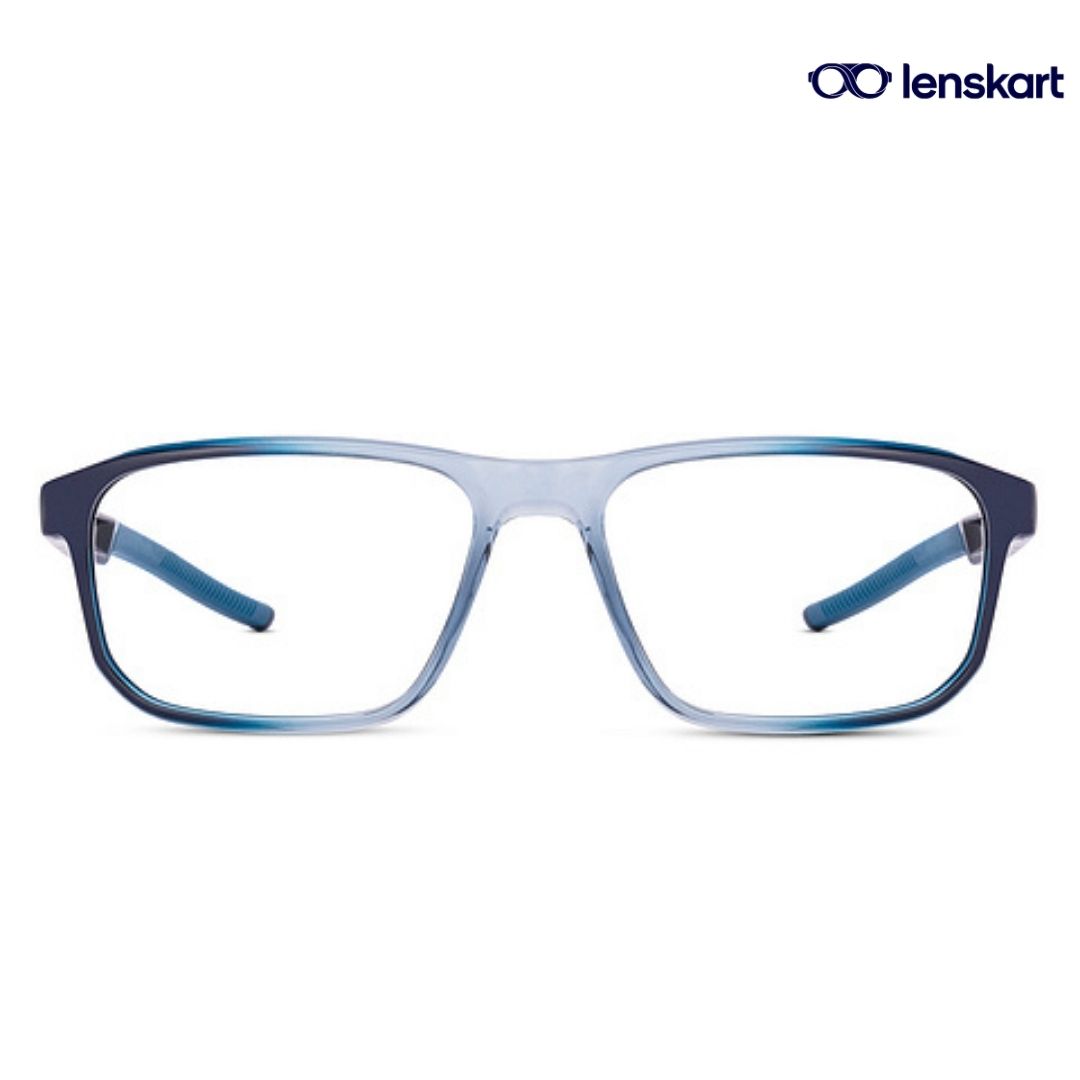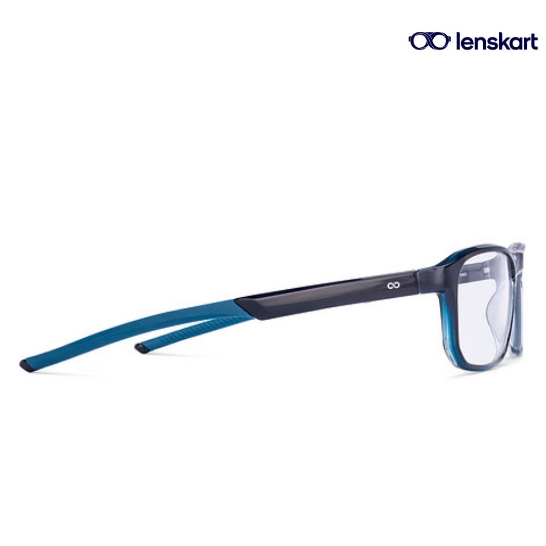 Description of LA E000072 C1 Blue Transparent Rectangle Eyeglasses:
