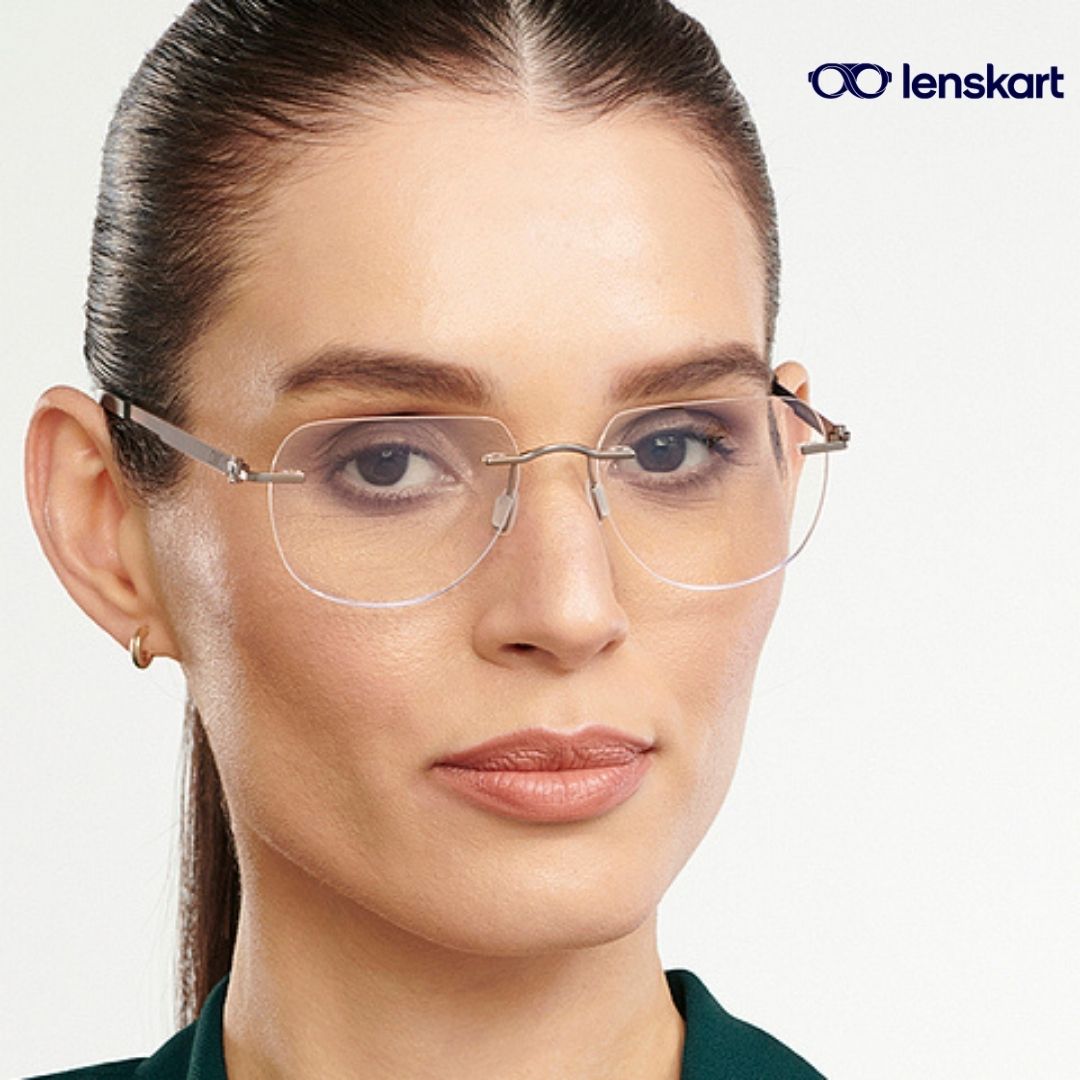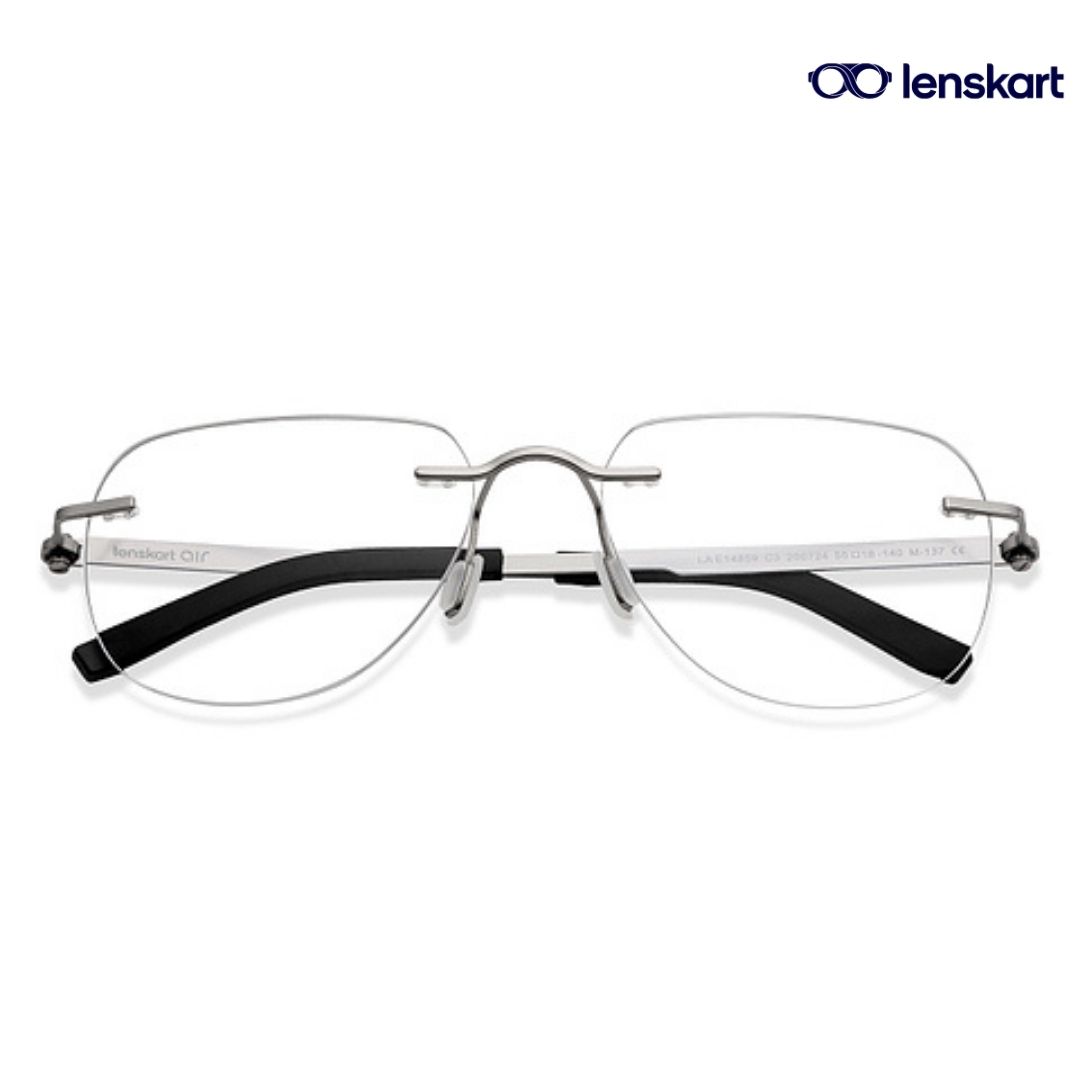 Description of Silver Black Rimless Square Eyeglasses LA E14859 C3 :