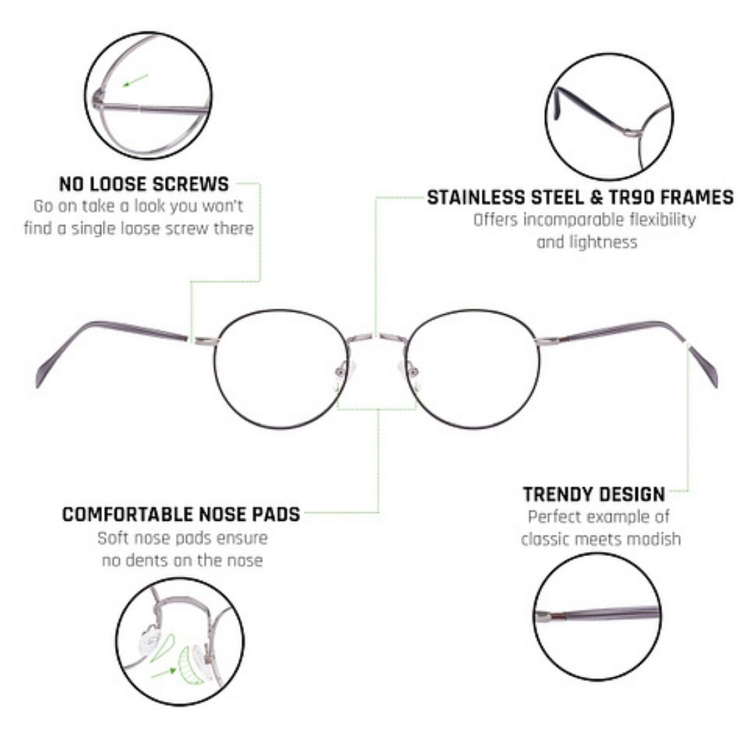 In the box: Vincent Chase VC E11560 C1 Metal Grey Black Round Eyeglasses , Luxurious Protective Box, Wiper